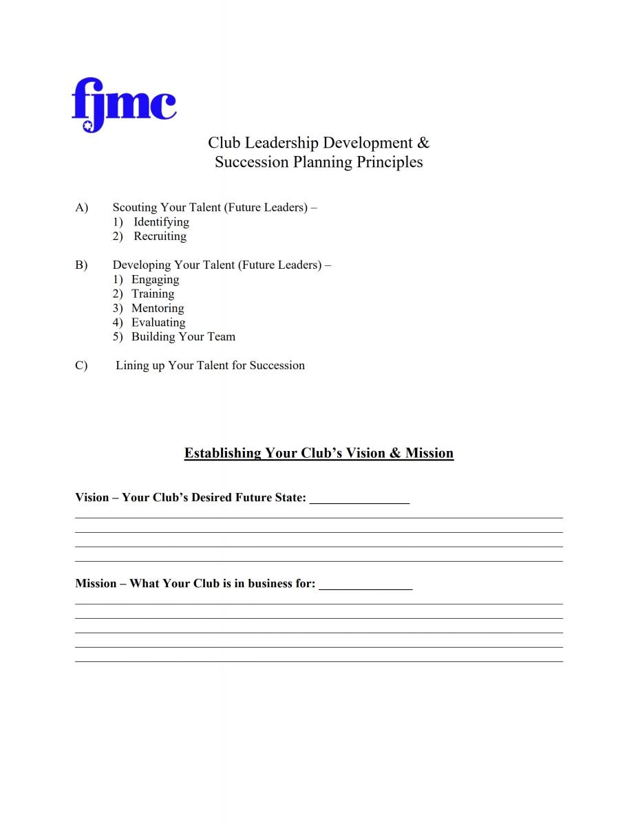 - Club Leadership Development & Succession Planning Principles - Discussion & Worksheet