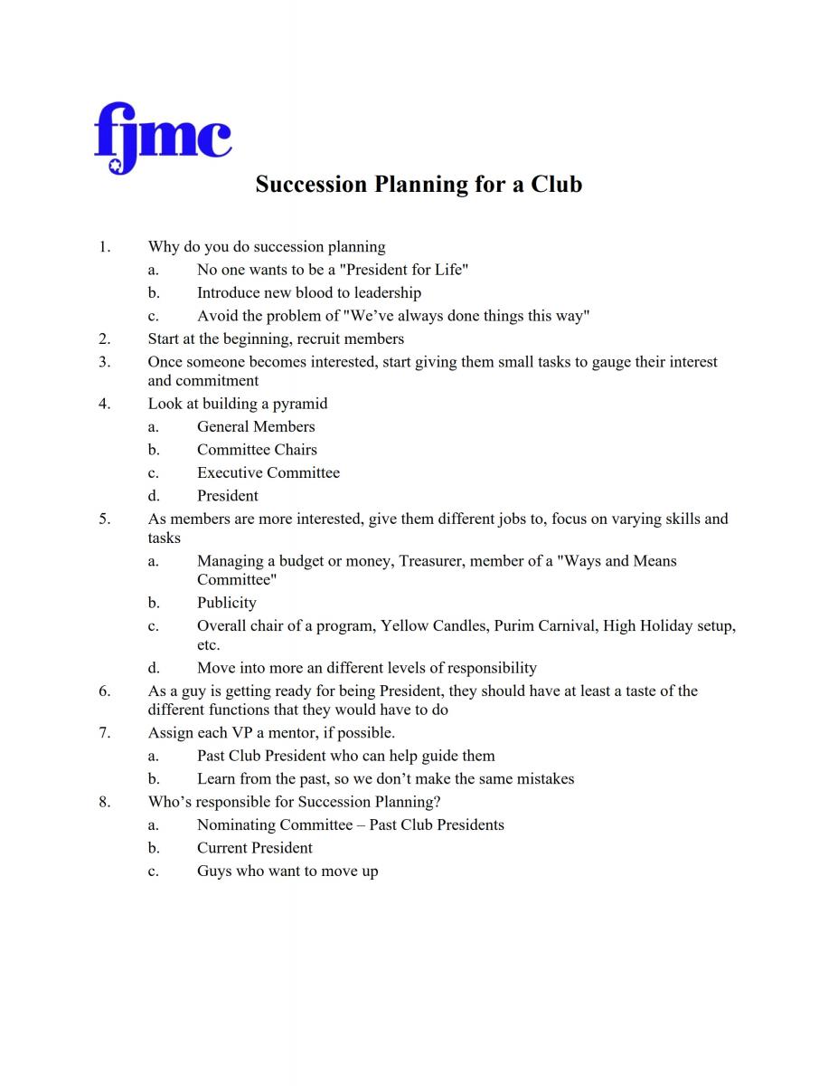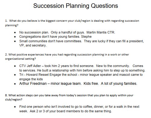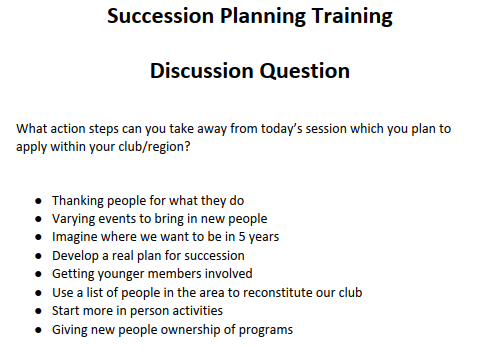 We are pleased to present the following library of presentations, outlines, handouts, and discussion questions on club succession planning: