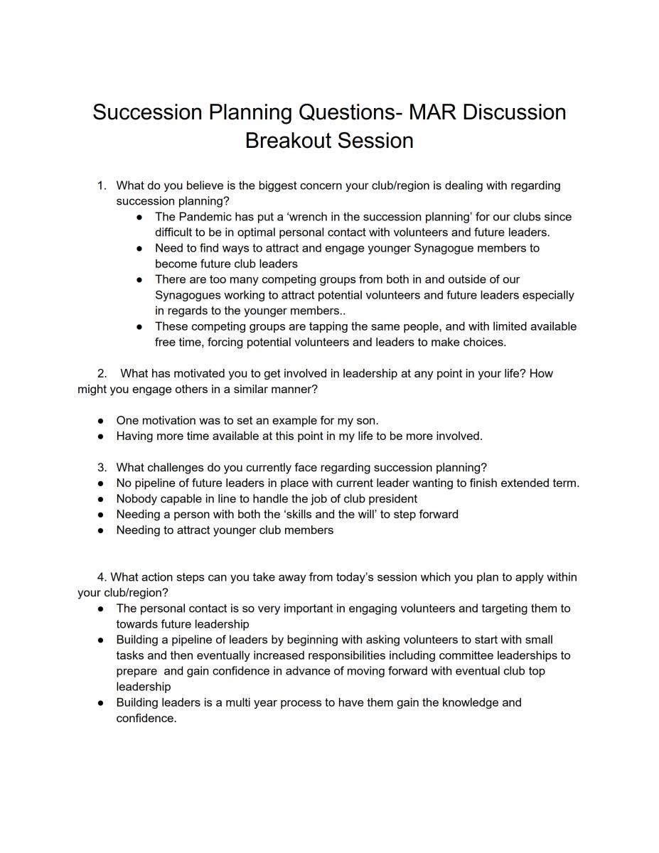 - Succession Planning Questions - MAR Discussion - Discussion Questions