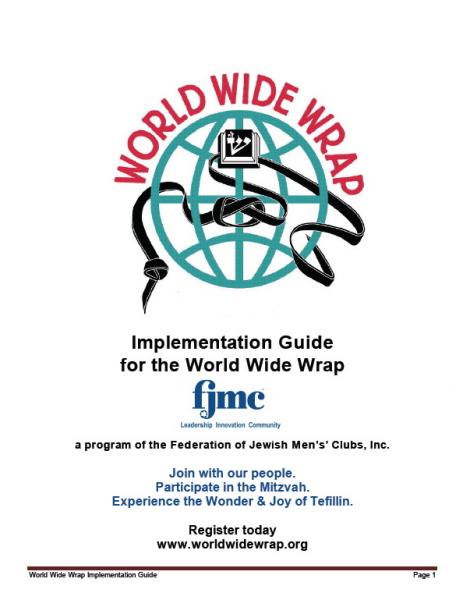 Download this first, it's the guide to a successful World Wide Wrap that has helped hundreds of thousands to join us. Now 10 pages of information, tips and schedules to make your Wrap complete.  You may also download a spiritual guide from the menu to the left.  The title of the spritual guide is "First Thoughts: A Tefillin Spiritual Primer".
