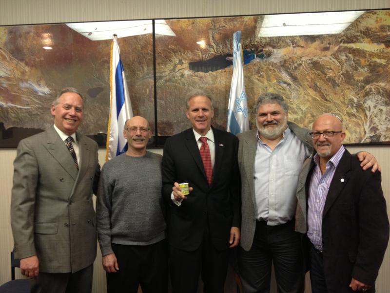 The FJMC is dedicated to strengthening support for Israel by ensuring that the public receives accurate and truthful information. [In the above picture, Left to right-> Rabbi Robert Golub, Executive Director, MERCAZ-USA, Michael Perloff, FJMC Israel Advocacy Chairman, Ambassador Michael Oren, Israel, Stan Greenspan, FJMC VP, Allan Gottesman, FJMC VP. Taken at a meeting at the Embassy of Israel, February 20, 2012. Ambassador Oren has been given an FJMC Yellow Candle which he knew about and promised to light on Yom HaShoah.]