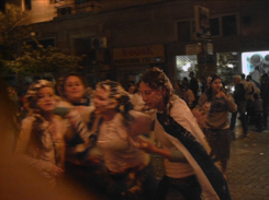 | Shaving cream and silly string wars are a common way of celebrating the day in Israel, as seen on Ben Yehuda Street in Jerusalem on the holiday in 2006 | ![]() |