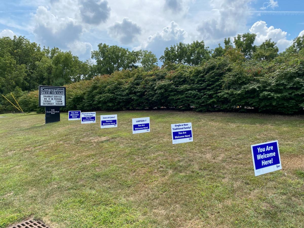 Here are two images of the signs - a photo of the signs in place, and a graphical layout of them.. You may click on the above image for a pdf copy.